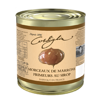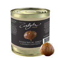Candied chestnut in syrup. "Primeur": chestnut "al dente" with a chestnut flavour.