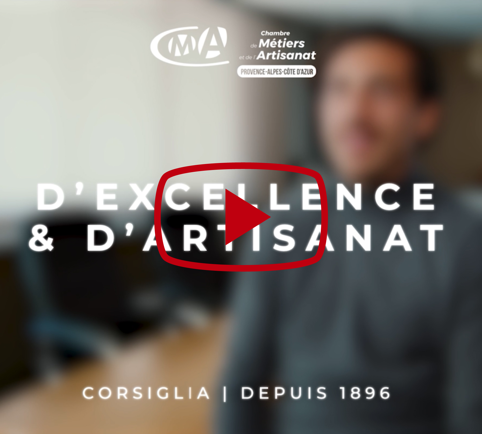 À l’occasion de la soirée de l'émergence de l’excellence artisanale au Domaine de la Pommé, l’entreprise Corsiglia a eu l’honneur d’être choisie pour illustrer le centenaire de la CMA à travers une vidéo dédiée à notre savoir-faire.